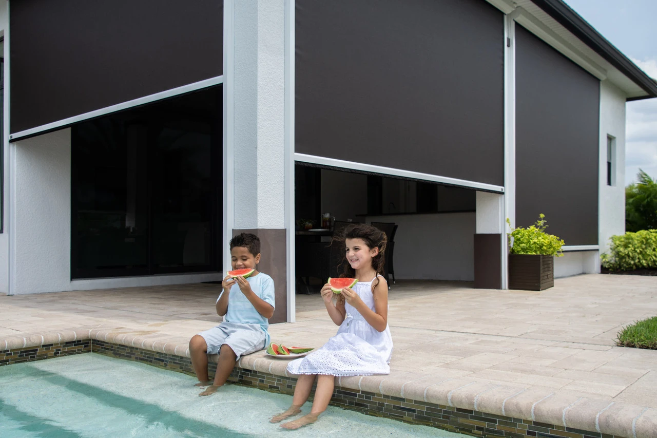 For the ultimate comfort of your outdoor living space, choose Genius Retractable Motorized Screens. These Genius models protect against insects, debris, sun, heat, and wind with a custom-made motorized screen. They come pre-assembled for easy recessed or surface-mount installation.